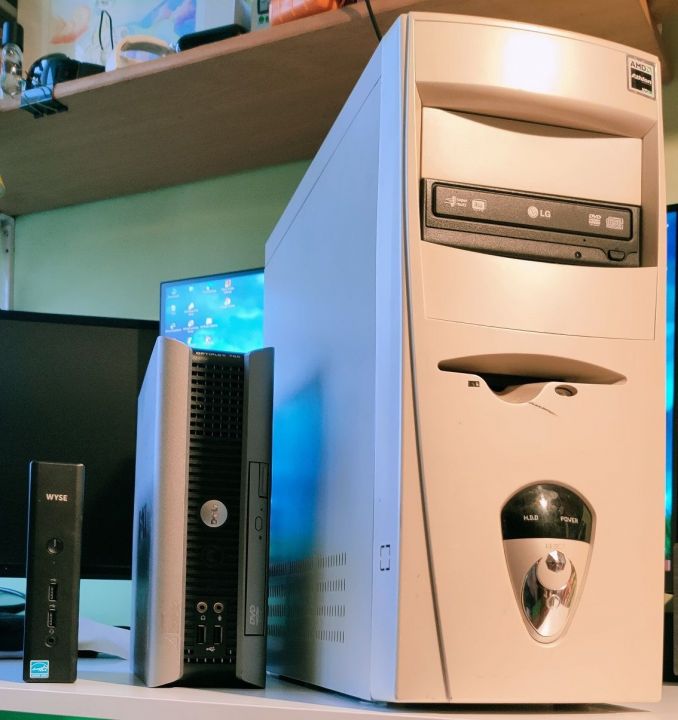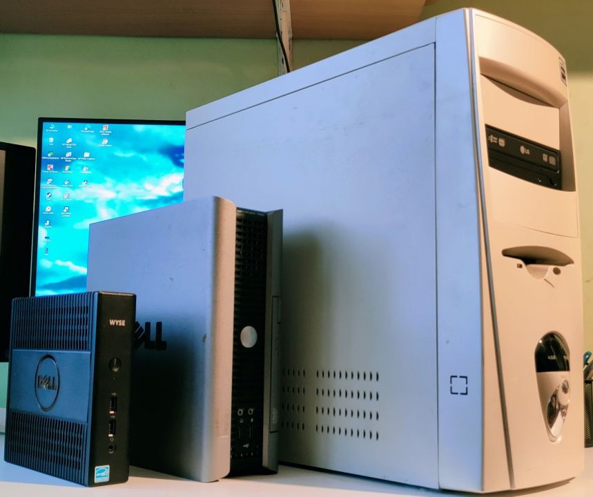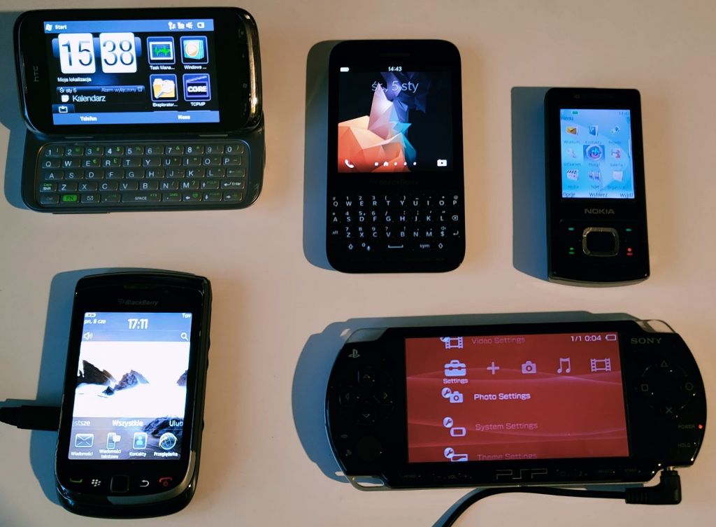 Trochę elektroniki mi się nazbierało Na początek komputery: Największy to jest już pełnoletni, na pokładzie powinien mieć Windowsa 98, ma jednordzeniowego athlona o taktowaniu 1150Mhz, 512Mb ramu i grafikę Geforce 4 mx440. Nie za bardzo chce współpracować ale dwa razy udało mi się go urochodzic i wejść do biosu, niestety z odpiętym dyskiem, jeszcze będę nad nim siedział i spróbuje go uruchomić. Też średnio wysoki to Dell Optiplex 755 z procesorem C2D E8500 czyli dwa rdzenie do 3.16Ghz i nieśmiertelne LGA775 do tego 4gb ramu i daw windowsy XP 7. Taki typowy komputerek biurowy ale fajnie wygląda i dużo waży I najmniejszy w stawce czyli Dell wyse 5060, czyli terminal komputerowy z pasywnym chłodzeniem, ma 4-rdzeniowy procek od AMD wlutowany w płytę i 4gb ram takiego laptopowego, jest standardowy "dysk" albo raczej karta pamięci ma 8gb ale po zastosowaniu przejściówki wpasowałem SSD 256Gb. Zainstalowałem na nim coś z czym nigdy nie miałem styczności czyli Linuxa a a dokładniej Zorin os 16 core... i już wiem że średnio sobie z tym radzę Bo komp ogólnie pod ten system chyba od bo filmy na YT chodzą w sumie płynnie w 1440p a z dysku w nawet 4K ale z drugiej strony ma przycinki w systemie z włączonym "menadżerem plików". Nie za bardzo wiem jak na tym systemie coś zrobić, np. chciałem podzielić dysk na partycje ale jak przeczytałem instrukcję jak to zrobić... to nadal nic nie wiem Ale wiem że na początku nie jest prosto. Mam jeszcze mniejsze sprzęty. Zacznę od PSP ze śmietnika... tak ktoś wyrzucił dobre PSP i nawet ma kartę z grami. Kolejna jest Nokia 6500 Slide... stare dobre czasy dla tej marki. Kolejny jest HTC Rhodium(na górze po lewej) Kiedyś miałem takiego przez prawie 6 lat, fajny sprzęt na Windows mobile 6.1 ale na dzisiejsze czasy kompletnie bez użyteczny bo już w sumie nic na nim nie działa. I na koniec dwa Blackberry, jeden to torch 2 z pełną wysuwaną klawiaturą, a drugi to Q5 z dość nietypowym kwadratowym ekranem i też pełną klawiaturą. Ogólnie kiedyś telefony były takie bardziej różnorodne1 point