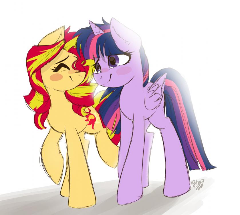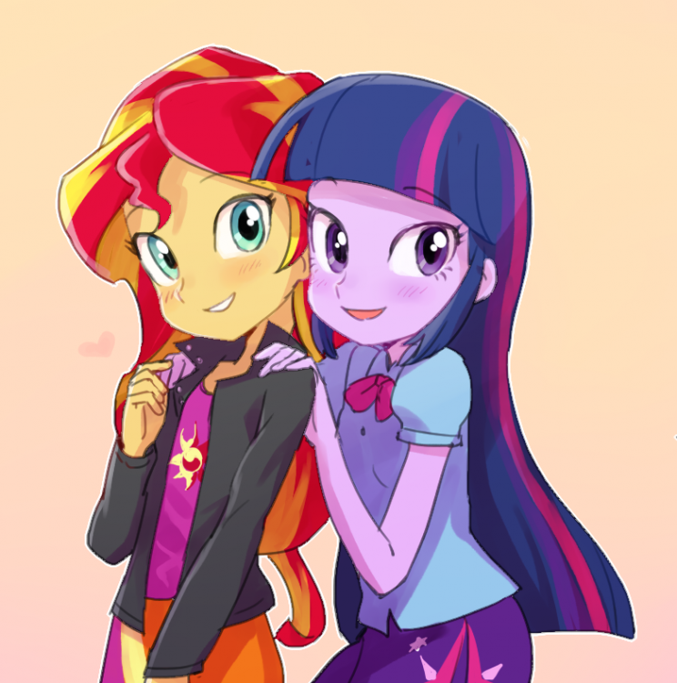 @Socks Chaser Lyra i Bon Bon nie pasują do siebie jako para. W każdym związku homoseksualnym jedna osoba pełni rolę mężczyzny, a druga kobiety (w mlp ogiera i klaczy). Obydwie są bardzo kobiece ("klaczowe"), więc mogą być tylko przyjaciółkami. Takie jest moje zdanie. Jak coś to byłem już w trakcie pisania swojego postu, dlatego od razu... ----------------------------------------------------- ...Zarzucam kolejną parę, którą weźmiemy na warsztat do przedyskutowania: . . . Sunset Shimmer i Twilight Sparkle Obrazki poglądowe: