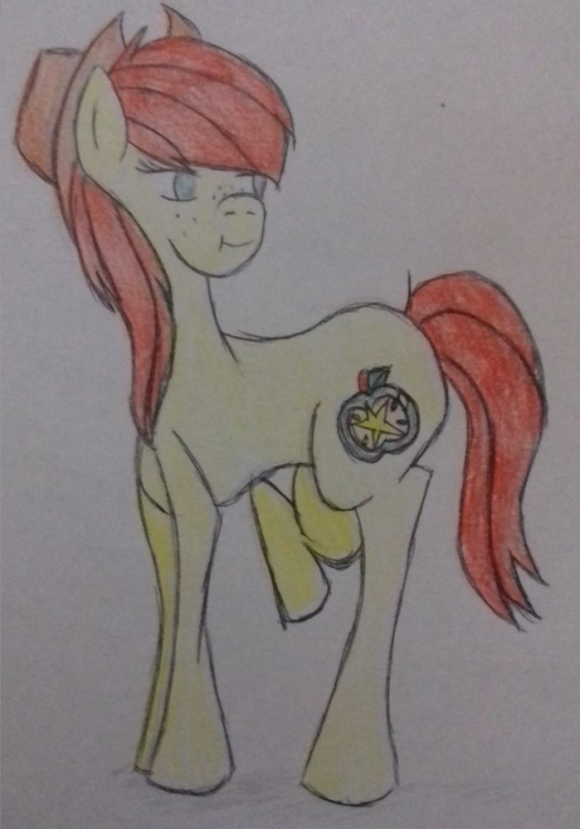 Hej! W sumie nie jestem taka początkująca jeśli chodzi o rysowanie kucyków (od 5 klasy szkoły podstawowej), ale odbiega to od perfekcji nawet bardzo xd. Zresztą sami oceńcie. Poniżej macie żeńską wersję Bright Mac'a mojego autorstwa