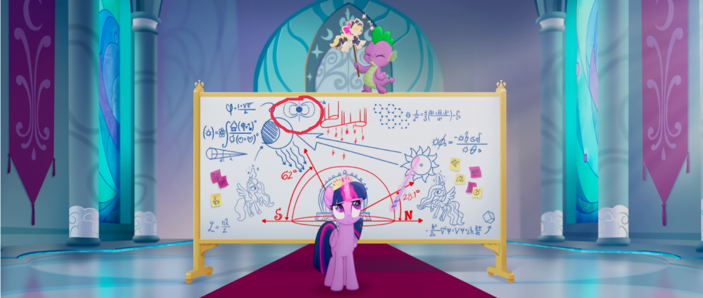 @Król Etirenus Jeżeli miałeś na myśli ten obrazek, to raczej nie jest to pulsar, a pole magnetyczne planety, natomiast linie u góry i u dołu oznaczają oś jej obrotu. Obok rysunku znajduje się strzałka która wskazuje na coś, co bardzo przypomina naszą zorzę polarną. Bardzo mnie ciekawi, czym jest obiekt znajdujący się za głową Twilight . Patrząc na ten obrazek przypuszczać można, że Equestria jest częścią planety A może po prostu pływa sobie na wielkim żółwiu -_-