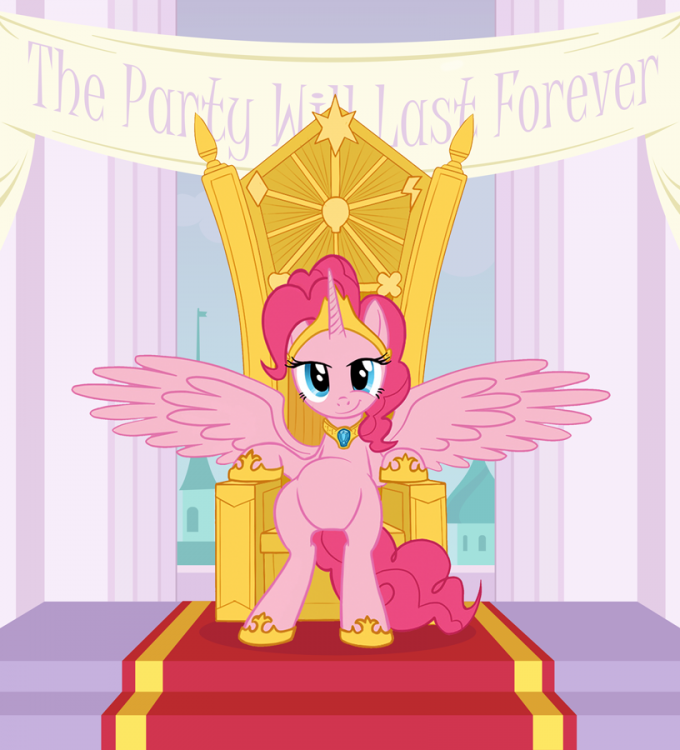 Powraca Nightmare Moon i Daybreaker, powstaje między nimi walka o władzę absolutną. Obie mają stronnictwa wśród kucy, sługi gotowe oddać życie za swoje księżniczki. Twilight, reprezentująca stronnictwo neutralne, próbujące zachować pokój i poprzedni stan rzeczy, nie może powstrzymać wyniszczającej kraj wojny. Jedynym rozwiązaniem jest wypędzenie obu je księżyc. W panującym bezkrólewiu i anarchii, Iskierka bez problemu ogłasza Sombre jedynym królem. Stało się tak, ponieważ tak naprawdę to nie była Twilight tylko Chrysalis, która stała się wtedy królową. Pierwszym dekretem było wypędzenie Tęczożuczków za zdradę, brzydki wygląd i dla zasady. Mane6 za nieocenioną pomoc w skłóceniu i obaleniu księżniczek zostają namiestnikami poszczególnych prowincji Equestrii. Żyją w wielkim dostatku we wspaniałych pałacach. Wyjątkiem jest oczywiście Twilight, która jako księżniczka i alicorn była zagrożeniem dla nowych władców. Flurry Heart z uwagi na młody wiek zostaje przygarnięta i zindoktrynowana przez Sombre, który widzi w niej narzędzie terroru. Wychowana zostaje na straszliwego następce tronu przez Discorda. Wkrótce staje się pół-boską istotą, dysponującą niewyobrażalną potęgą. Wykorzystując tą moc, przejmuje kontrolę i ogłasza się niepodzielnym władcą całego świata, którym włada twardym kopytem, wzbudzając strach i podziw nie tylko wśród swoich niewolników, ale też i mieszkańców reszty państw, których władcy są jedynie marionetkami w jej kopytach. I jeszcze ostatnie ujęcie, gdy siedzi na tronie, a kadr się powiększa ukazując porządek nowego "wspaniałego" świata. Oczywiście wszystko okraszone ponurą, mroczną piosenką. Koniec. Lubię depresyjne zakończenia. Może nawet napiszę fika o tej wizji. Komentarz bardziej bekowy niż prawdziwe przemyślenia. Miejcie to na uwadze czytając. Jakby co, to taki temat był poruszany na którejś tam Agorze na FGE.