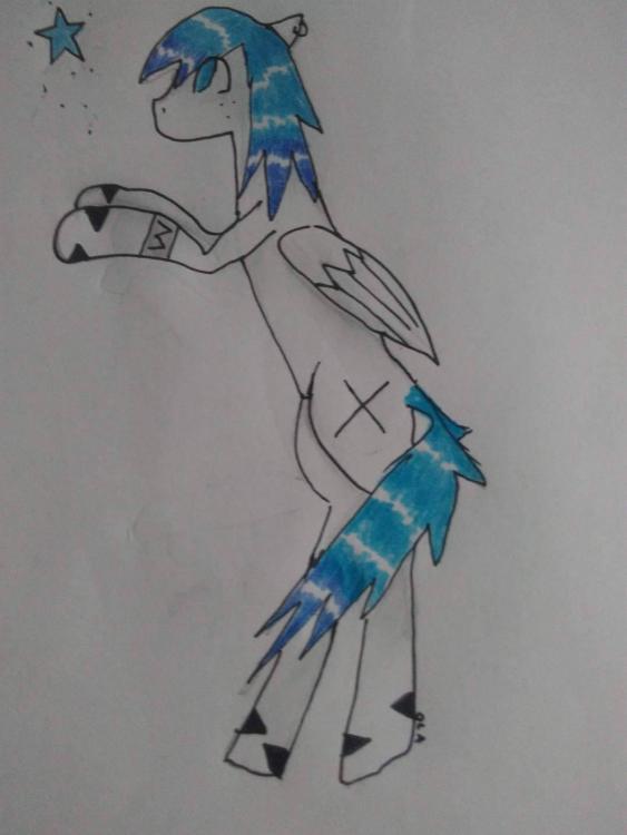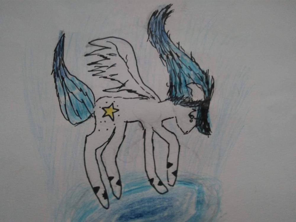 Imię: Starly Flight Ksywka: Starly Wiek: 15 Płeć: Klacz Urodziny: 12 grudnia Znaczek: Błękitna gwiazda Opis wyglądu: Ma błękitno-granatową grzywę, białą maść, dwie branzolety na dwóch przednich nogach (jedna z napisem M), Kolczyk w uchu, Czarne łaty na nogach w kształcie trójkątów, piegi, błękitne oczy. Opis charakteru: Starly jest spokojna ale przy bliskich przyjaciołach potrafi się śmiać naprawdę głośno. Jest skryta w sobie więc w razie gdy będzie miała problem nie licz, że się otworzy ( chyba, że serio ją przyciśniesz), Miłośniczka książek i astrologii, Lubi się uczyć, Nigdy się nie poddaje nawet w trudnych chwilach. Rysunek: Historia: W końcu dodałam rysunek Przeczytajcie historię dokładnie i napiszcie w komentarzu co sądzicie o moje ponysonce!