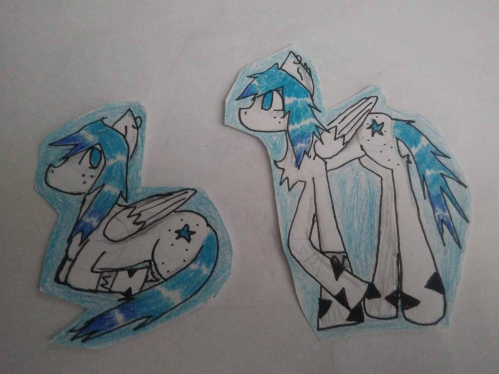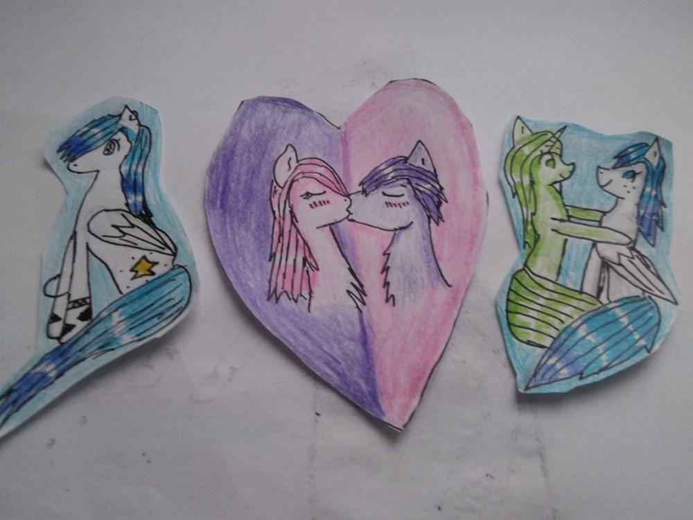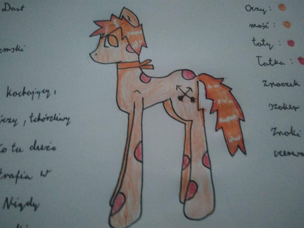 Hejo! To mój nowy temat z rysunkami Wstawię tutaj kilka moich prac a wy powiecie czy wam się podoba, czy macie jakieś zastrzeżenia. Ten rysunek został wykonany w paint. Serio, w zwykłym paint. Może nie jest jakiś wybitny ale mi się podoba. Bdw. To moja ponysona Starly Flight To jest mój ocek Sunnie Dart. Nie zwracać uwagi na te napisy z boku, bo to była moja karta z wyglądem itd. Ale rysunek jest fajny więc go wrzucam To jest kucyk na plaży. Po prostu super. Nie no, nie jest taki zły w sumie... (to chłopak) Znowu moja ponysonka. Wiem te czarne linie... Nie zwracać na to uwagi. Postaram się już tak nie robić To już nowszy rysunek. Starly z syrenką? ehh.. I w końcu ostatnie rysunki. Takie mniejsze wycięte. Ok, to już wszystko. Dajcie znać co mogłabym poprawić i który rysunek jest najładniejszy. Ciao