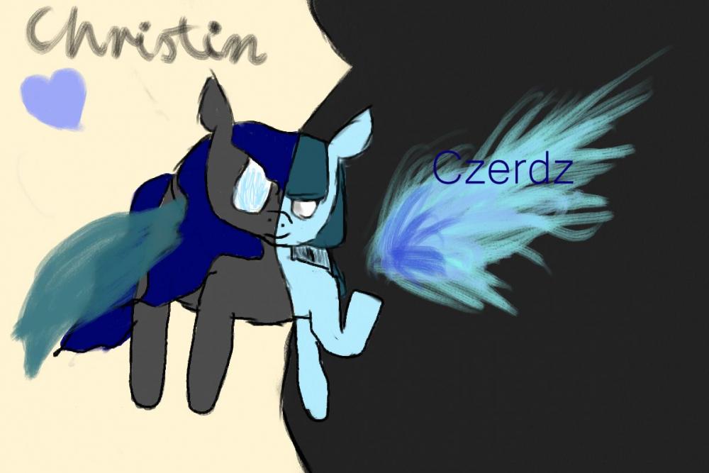 Historia mojej OC.Przed Christin, (czytaj ; Kristin ) urodziła się jej siostra Czerdz. Ich rodzice pochodzą od dwóch innych ras . Tata jest podmięcem , a mama pegazem . Christin urodziła się w Kryształowym królestwie . Była niechcianym dzieckiem , jej mama bardzo jej nie chciała . Chciała ją porzucić, ale ojciec na to nie pozwolił . kiedy była wojna jej tata umarł , dał jej naszyjnik z niebieskim płomyczkiem . Miała w tedy 15 lat , i bardzo to przeżywała . Po tym wydarzeniu jej zmarła siostra , postanowiła jej pomóc .