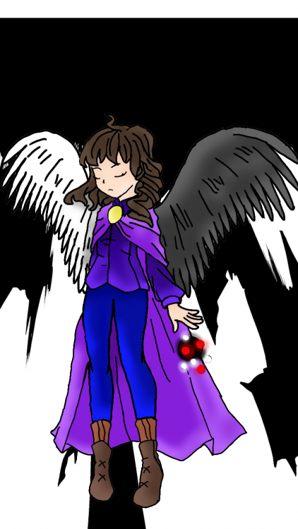 Jak dla mnie to nie jest przesadzona moc, umie tylko rozmawiać z gwiazdami i rysować. Świeci się tylko na tym Arcie bo tło wydawało mi się zbyt szare i obramowałak tak postać. Mroczna nie jest, aspołeczna nie, bardziej jest introwertykiem, nie rozmawia z ludźmi bo poprostu uważa że jeśli temat nie jest ważny to po co na ten temat rozmawiać, a plotek nie lubi. Dużo osób robi fajne historie, ale to moje pierwsze Ocki, a żeby coś dobrze robić trzeba ćwiczyć, histori też nie zaczne od razu robić idealnych. A jedyna inna opcja jej bio jaka jeszcze mi do nie pasuje to to że jest gwiazdą która spadła na ziemie, ale nie wiem. W każdym razie dzięki za komętarz, może przy następnej OC uda mi sięlepiej zrobić