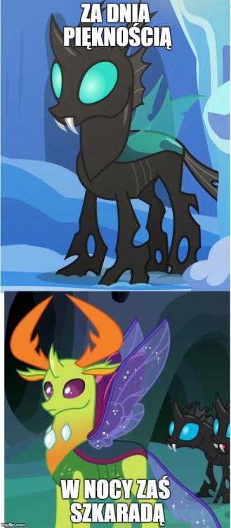 Wybaczcie, że tak długo musieliście czekać, ale czytanie opowiadania od tyłu trochę zajmuje, kiedy patrzy się pod kątem gramatycznym. Oto i wyniki naszego MAŁEGO konkursu: 1. "Twilight czyta Ferdydurke / ekrudydreF atyzc thgiliwT" autorstwa @Foley Pomijając sporadyczne literówki jak przykładowo "eicłanawd" zamiast "eicśanawd" oraz niezbyt rozbudowaną kompleksowość wypowiedzi bohaterów, opowiadanie zaskoczyło mnie... właściwie to sam nie wiem czym. Te 301 słów skończyło się bardzo szybko, zaś skolokwializowanie postaci Twilight, jakkolwiek mi się nie podobające, zasługuje na pochwałę ze względu na oryginalne jej przedstawienie. Cóż więcej dodać? Jak bardzo mnie kusi by zacytować główną, tytułową bohaterkę, jej jedyną kwestię w stosunku do tego fanfika. No ale tego nie zrobię. Konkurs to konkurs. Jak mógłbym więc jednym zdaniem określić ten utwór? Trzysta jeden słów to za mało, by ukazać jego epickość. (Aczkolwiek pomysł zapisu odtylcowego całkiem dobry). Ocena liczbowa: Gramatyka: 4/5 Oryginalność: 4/5 Spójność: 3/5 Głównym punktem zwrotnym w ocenie był jego punkt kulminacyjny. Nadszedł zdecydowanie za szybko, a jego efekty nie porywały, co zaliczyłem do kategorii spójności. 2. "Brudne Myśli" autorstwa @D.E.F.S Co pierwsze rzuca się w oczy to okropne problemy autora z przyciskiem "alt" oraz "shift", no ale przecież zdarza się. Czytając dalej natknąłem się na falę negatywnej energii, wyrażonej tradycyjną polską wiązanką. Im dalej w las, tym gorzej. Mamy nowe słowo: boginia. Mamy też oryginalny zapis dialogów, nad którym po prostu nie mam siły się rozpisywać. Może to był zamierzony efekt, może też nie, nie jestem pewien. Opowiadanie przedstawia oryginalnie ukazaną z perspektywy emocjonalnej scenę sprzed wydarzeń z pierwszego odcinka pierwszego sezonu. Dosyć biedna, rozszczepiona na dwa oddzielone od siebie trzema dniami interwału fragmenty fabuła i oryginalność pracy jednak chowają się przy ilości literówek, błędów mniejszego i większego kalibru oraz problemów księżniczki z syndromem Tourette'a. Ocena liczbowa: Gramatyka: 2/5 Oryginalność: 4/5 Spójność: 3/5 Reasumując, oto tabela wyników: 1. Miejsce: Foley ze średnią oceną 3.67/5 ... 2. Miejsce: Darth Evill ze średnią oceną 3/5 Gratulacje dla wygranych na podium i dla tych, którzy się w tym podium nie zmieścili!