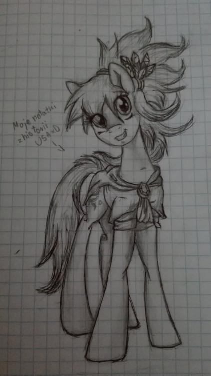 Dobry wieczór wszystkim! Dość długo mnie nie było... w sumie nie wiem, czemu, bo trochę rysowałam. Może dlatego, że z naciskiem na "trochę". Poza tym... nie wiem, nie widzę u siebie progresu jakoś Meh... No cóż, ale coś mam, to pokażę, co mi szkodzi Uczę się rysować ludzi. póki co wygląda to tak: Coś, co skończyłam, ale nie mam zdjęcia skończonej pracy - znów zamówienie od innej koleżanki... wzięłam, bo dość ciekawe Trzy OC'ki, w tym jeden nie mój, ale rysunek jak najbardziej - skrzyżowanie anime i mlp, powstałe z nudów na wykładzie I na koniec coś już nieaktualnego, zrobionego na tydzień przed odcinkiem, w którym rysunek stał się nieaktualny - Welp... tyle. Są wakacje, pewnie jeszcze coś wrzucę. W każdym razie nie mam zamiaru zasypiać na kolejne pół roku xD Miłego oglądania i miłego dnia