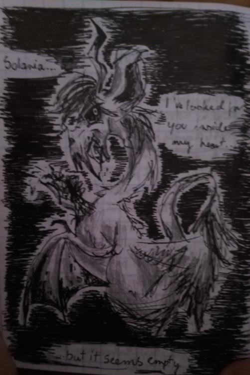 Wiem. Właśnie dlatego ci nie pokazałam Heh, miły od zawsze na zawsze... dzięki ^^ Dzień dobry, rówieśniczko! Huh... na szyję nie zwróciłam uwagi, dzięki ^^ (I to z siłownią mnie rozwaliło xD) A efekt uzyskałam białą kredką i suchą pastelą - polecam na grube kartki ( bo zwykłe się od nich drą, a tutaj akurat rysowałam na brystolu) ^^. OC-ki są z uniwersum Fallout of Equestria, więc tam akurat taki wydźwięk pasuje. Ale masz rację, trochę brązu czy zgniłej zieleni na ziemi by nie zaszkodziło A co do oka... oryginalnie go nie było, ale Azzie wyglądał przez to, moim zdaniem, jak pirat xd Więc, z dwojga złego... Tak, pastele olejne. Bardzo fajna rzecz, ale szybko się zużywają - to tylko kartka A3, a 1/3 kredki poszła na te ściany. Pinkie Promise, że jak odwiedzę koleżankę, wstawię zdjęcie skończonej pracy W ogóle, rysowanie tego to było dobre ćwiczenie porównania anatomii kucyków do ludzkiej - jak ułożyć kopyta, by zastąpić ekspresję dłoni i stóp, Jak skopiować mimikę z mało wyraźnego fresku do bardzo wyrazistych pyszczków, nawet proporcje. To mamy podobne gusta, uwielbiam ołówek I dzięki ^^ Tego z ogniem jestem świadoma, po prostu na tym etapie nie umiałam go zrobić inaczej :/ A w kopytach - hmm, nie pamiętam, czy to nie była kwestia złej perspektywy, która mi też nie wyszła. Dzięki za uwagę ^^ I ogólnie, dziękuję za konstruktywizm, Moonlight. Miło się czyta twoje ścianki (mam nadzieję, że przez moją też jakoś przebrnęłaś :3) Okej, w następnym poście będzie (hope you don't mind a hug ^^' ) Okiej, listy listami, a ja mam pół roku wstawiania do nadrobienia Obrazek z Consentem w czasie tworzenia którego wypisał mi się długopis... co widać (), ale i tak, moim zdaniem, ładnie wyszedł Istota, Która Jeszcze Nie Ma Imienia w kolorku (a właściwie w jednym z wariantów kolorku, bo zmienia go zależnie od nastroju ) Trochę demonicznych "pobratymców" paczki paranormalnych przyjaciół Liselotte, bo lubię dziwne istoty, to czemu nie Taki tam zameczek, który jest tak naprawdę efektem nudy, dlatego nie ma za bardzo cieniowania Domki to nic więcej, jak zestaw ładnie ułożonych kwadracików rysowanych pod lupą I na koniec parę OC-ków "w akcji", głównie obrazki do fica, który współtworzę (chyba, bo mojej części mi się pisać na razie nie chce, a mój współpisarz ma parę nowych projektów, więc powiedzmy, że jest "on hitatus" - oto link, gdyby ktoś był zainteresowany I to nie jest tyle reklama, co wyjaśnienie, przepraszam ^^""") No, tyle na dzisiaj. Miłego oglądania i miłego dnia