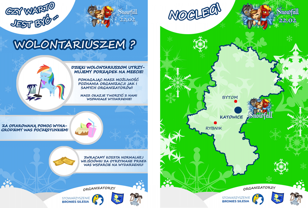Halo? Tak ty! Mamy dla ciebie coś bardzo ważnego do przekazania tobie oraz twoim przyjaciołom! Wsłuchaj się uważnie, bo dzięki temu zrozumiesz o co w tym wszystkim chodzi ! A więc, nie wiem czy wiesz, ale 22 lutego, w 2020 roku odbędzie się kolejna, już 3 edycja Snowfall Ponymeeta w Katowicach! Zapytasz się pewnie gdzie dokładnie, ale tu większego zaskoczenia nie ma. Miejsce to Miejski Dom Kultury Koszutka, Filia „Dąb”, który znajduje się przy ulicy Krzyżowej 1, z kodem pocztowym 40-111. Mam nadzieję, że już zastanawiasz się nad zarezerwowaniem miejsca w kalendarzu, bo przejdziemy do szczegółów. Ponymeet potrwa od 10:00 do 18:00, a w tym czasie będzie masa świetnych atrakcji, m.in.: - Prelekcje dla osób ciekawych fandomu czy świata, - Gamesroom dla ludzi głodnych rywalizacji z przyjaciółmi, - Artroom dla tych co bazgrają nieustannie po szkicownikach i kartkach, - Konkursy, w których będziesz miał okazje zdobyć super nagrody, - Stoiska, gdzie znajdziesz sporą ilość kucowych i niekucowych gadżetów, - Aukcja charytatywna, dzięki której każdy grosz idzie na cele wolontariatu (czy to schronisko, czy dzieci w potrzebie) - I pewnie coś jeszcze, ale … … to ale oznacza, ze jeszcze coś nadciąga! Obserwuj wydarzenie, bo nigdy nie wiadomo co może się stać, co może zostać zaprezentowane i ogłoszone! Zatem widzisz o czym jest mowa i musisz nam powiedzieć czy się pojawisz! Jak zawsze chcemy aby każda kolejna edycja była wyjątkowa, i nie pozostaje nam nic innego jak powiedzieć tobie, ty innym i my innym, że SERDECZNIE ZAPRASZAMY! Niech i tym razem zróbmy wspólnie kolejne spotkanie, w fantastycznym gronie, fantastycznych ludzi! Wydarzenie na FB: https://www.facebook.com/events/652296845303633/