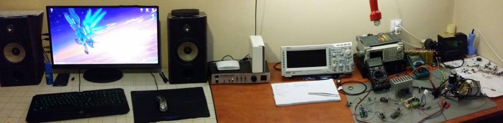 15. Z końcem stycznia, a także w połowie lutego przesiadłem się z laptopa na zwykłego ordynarnego blaszaka. Moje biureczko "komputerowe i nie tylko" wygląda tak oto: (słabo mi ta panorama wyszła ) Najmocniejszym argumentem za rezygnacją z laptopa była pogłębiająca się wada wzroku. Stąd też postanowiłem zainwestować w 27 calowy monitor Iliamy, który początkowo służył za dodatkowe urządzenie wyświetlające laptopa. Teraz już napędzany jest skrzynką: 0) obudowa: Corsair Carbide Serie SPEC-01 1) Procek: Intel Core i7 6700, jak na razie na chłodzeniu boxowym; 2) Płyta główna: MSI Z170A GAMING M5 3) Ramy: HyperX Savage Black XMP - 2 kości po 8 GB każda, ale wkrótce będzie ich 4; 4) Grafika: GEFORCE® GTX 1060 GAMING X 6G 5) SSD: GOODRAM 240GB 2,5'' SATA SSD Iridium PRO 6) HDD: 1TB Seagate 2,5" 7) Zasilacz: be quiet! 400W Pure Power 9 BOX; 8) Mysz i klawiatura: legendarna Logitech MX518, razer chroma czy jakoś tak; 9) widoczne na foto głośniki to Focal Aria 906, a napędzający je wzmacniaczyk robiłem sam od zera włącznie z obudową 10) a na prawo widzą państwo niewielki chaos projektowo konstrukcyjny; Ponieżej foto obudowy oraz jej wnętrze: P.S.