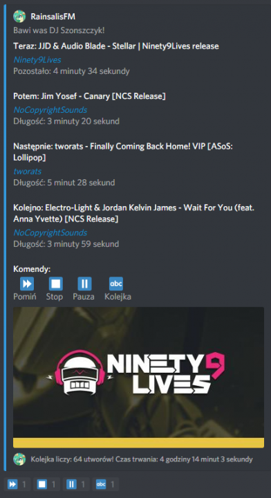 Jeśli człowiek się bardzo nudzi to przychodzą mu do głowy bardzo ciekawe pomysły, jednym z nich było stworzenie bota na platformę Discord. Zacząłem go (a teraz bardziej JĄ) pisać ponad 2 miesiące temu. Wybrałem DiscordJS, język programowania (tak naprawdę jest to nodeJS, ale w sumie to mało ważne...) którego nie ogarniałem, ale w ten czas zdążyłem już dobrze go opanować i oto jest: Co potrafi? Otóż całkiem dużo. Po wpisaniu komendy "sz help" ukaże nam się takie oto menu w którym możemy poruszać się za pomocą przycisków reakcji u dołu wiadomości: Niektóre ciekawe funkcje: Rozmówki, czyli bot odpisuje we wcześniej określony sposób, np: Reakcje: (można je utworzyć samemu!) Odpowiedzi na swój nick: Puszczanie muzyki: ("sz play") Hug: Emotki: ... i wiele innych! Żeby dodać tego bota na serwer: 1) Musisz być administratorem serwera lub posiadać uprawnienia zarządzania serwerem 2) Wejść w tego linka: NIEAKTUALNE 3) Wybrać serwer i autoryzować, a także niczego nie zmieniać we wcześniej ustalonych uprawnieniach! Zapraszam na serwer "Baza Dowodzenia Rainsalis" gdzie można pogadać z Rainsalis i porozmawiać o niej! Link: NIEAKTUALNE