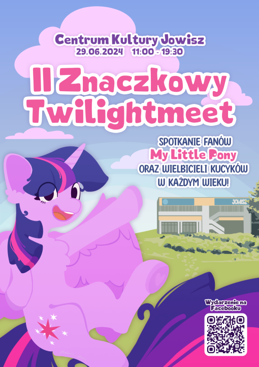 Czy na Waszych bokach pojawiły się już Urocze Znaczki? Jeżeli nie, to może spróbujemy je wspólnie zdobyć? W imieniu Stołecznego Bronies Twilight serdecznie zapraszamy Was do Warszawy, 29 czerwca 2024 roku na Znaczkowy Twilightmeet! Tak jak podczas pierwszej edycji w 2018, także i teraz ponownie postaramy się razem znaleźć nasze ukryte talenty uczestnicząc w rozmaitych atrakcjach! Na pewno nie zabraknie wśród nich ani kucykowego karaoke 🎤 Trotmanii na matach tanecznych 🎶, gier czy warsztatów. Do zobaczenia! Cena wejściówki: - 20 zł - standardowa - 10 zł - osoby poniżej 15 lat Przydatne linki: Wydarzenie na facebooku (znajdziecie w nim więcej informacji, np. o atrakcjach) Rejestracja (do 23 czerwca, godziny 23:59) Plan atrakcji Zgoda rodzica (wymagana dla niepełnoletnich) Regulamin Twilightmeeta